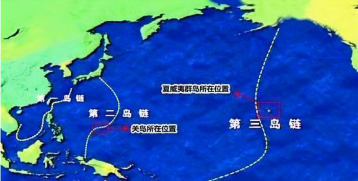 在杜勒斯的“岛链战略中”,太平洋自西向东划分出了三条岛链。